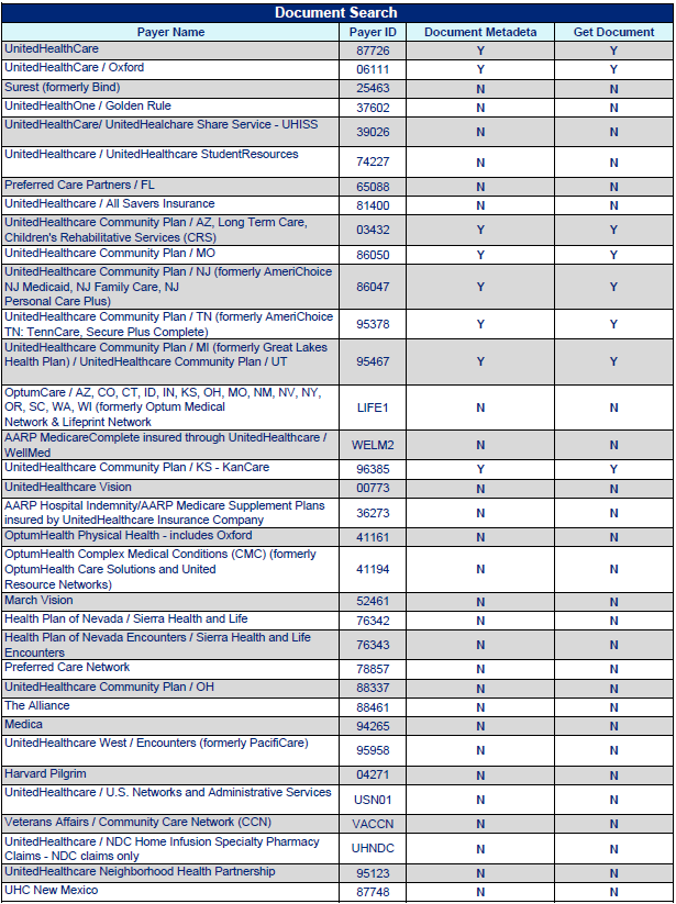 This page outlines payer IDs supported by the Optum Real APIs.